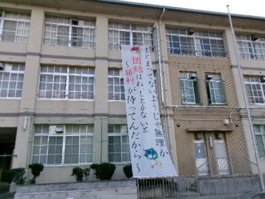 前期生徒会メンバーが作ってくれた垂れ幕が華を添えてくれます。