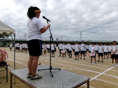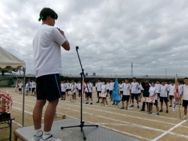 前期生徒会長から垂れ幕にも掲げられている、体育大会のスローガンが発表されました。
