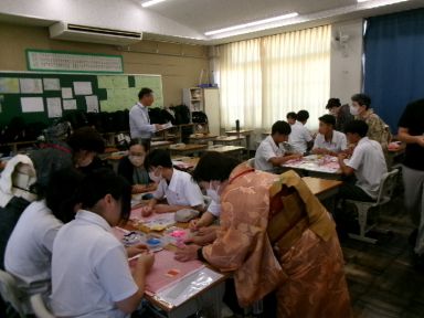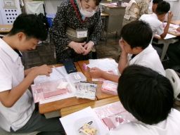 前回に引き続き、2年生ものづくり教室のようすを紹介します。まずは「ティッシュBOXカバーづくり教室」です。