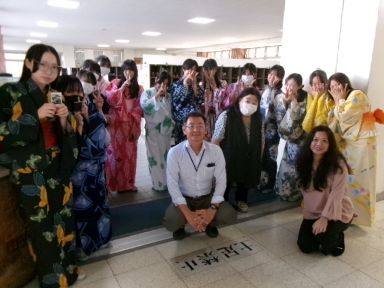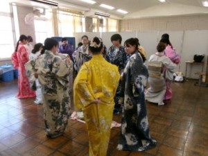 せっかくの晴れ着姿なので校長室前で記念にパチリ!