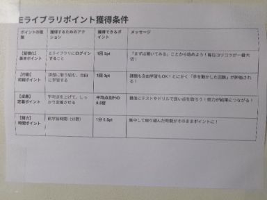 学習アプリのE-ライブラリ活用度ランキングです。ポイント付与のルールもありました。