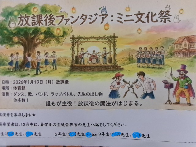 子どもたち発案の企画です。どんな催しなるのか、楽しみです。