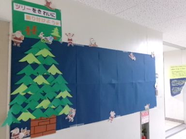 1年生の学年掲示板にクリスマスツリーが登場しました。