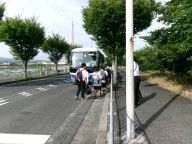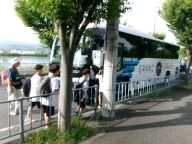 出発式の後、バスに乗り込み万博会場がある夢洲に向かいます。