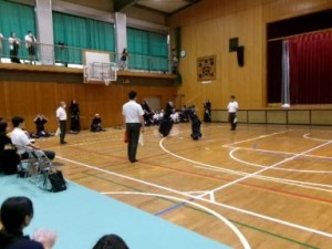 土生中剣道部も参加しました。午前中は団体戦、午後に個人戦が行われました。まずは男子の試合の様子です。