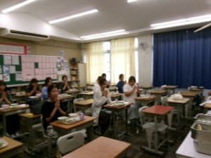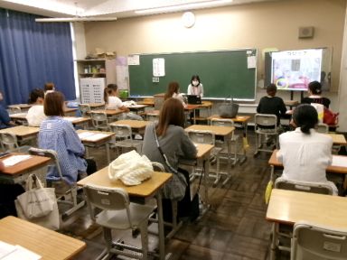 まず、栄養教諭の先生から岸和田市の給食についての説明がありました。参加された保護者の方たちは真剣に説明を聞いていただきました。