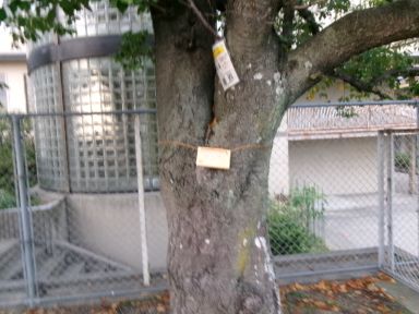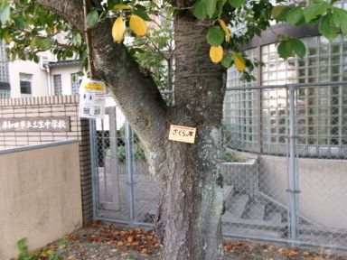 土生中学校にはたくさんの木が植えてあります。ある木には・・・