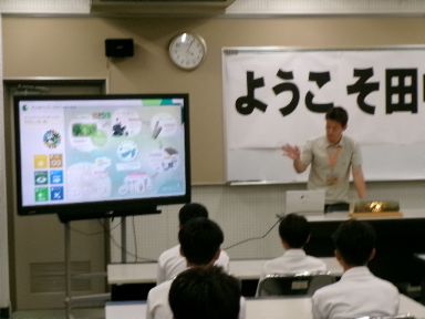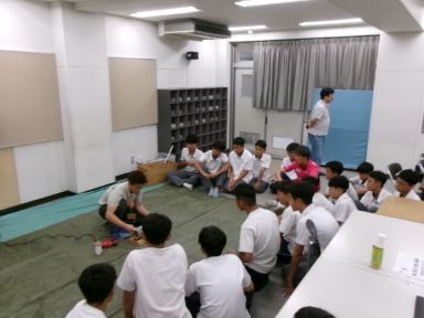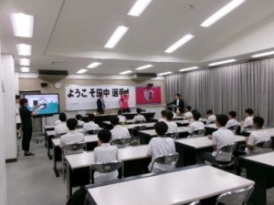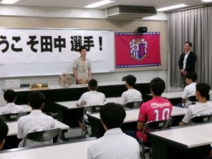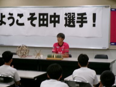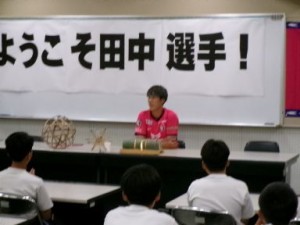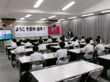 田中選手も土生っ子たちと同じ席に座って、岸和田市の取り組みの説明を聞いてくれました。
