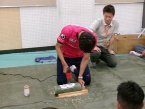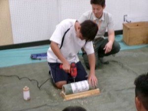 説明の後に、実際にリサイクル竹材を使った「竹あかり」づくりに挑戦しました。