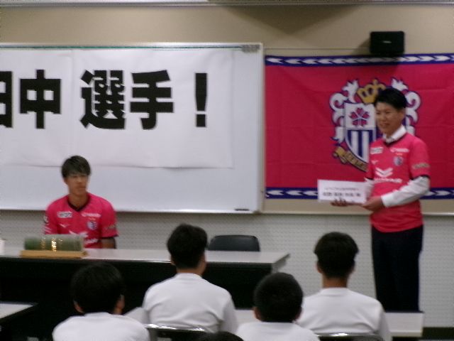 ビッグニュースです! なんとJリーグセレッソ大阪の田中駿汰選手が来校してくれました! 田中選手は土生中学校の卒業生ですが、今回はセレッソ大阪様と岸和田市教育員会 生涯学習部 スポーツ振興課様、岸和田市 建設部 公園緑地課様、土生中学校との地域課題解決に向けたコラボレーション企画として母校訪問してくれました。