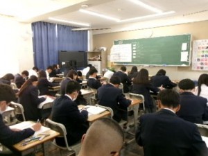 今日は3年生が3回目の学力診断テストに臨んでいます。